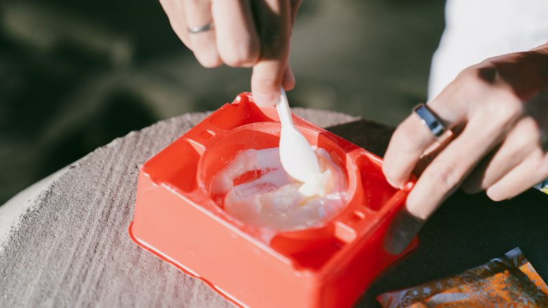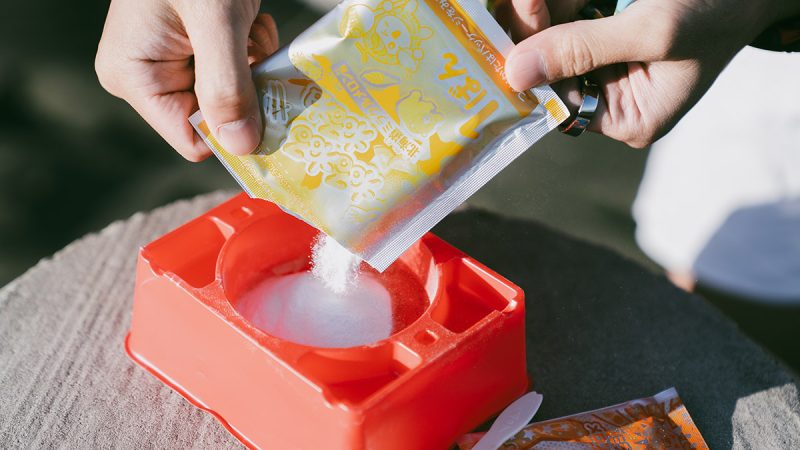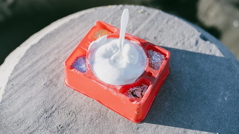 2の粉を入れて混ぜたら、ふっくらした物体が完成した。実に縁起がいい。これは2026年の期待や夢が膨らむことを表している。ちなみにこの限定品、一人用ではなく、4-5人用。さらにトッピングもついている。華やかだ。縁起がいいねるねるねるねなのだ。