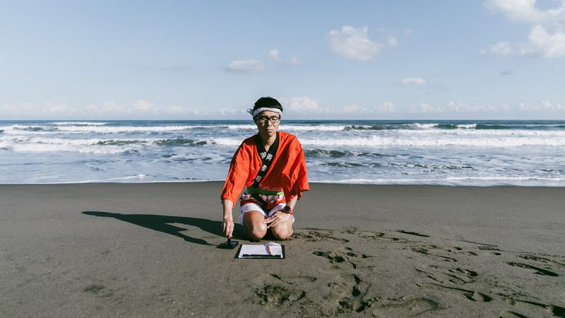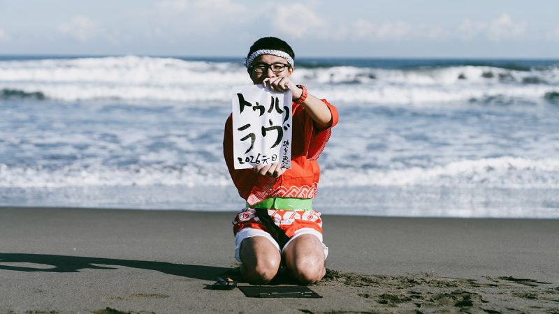 さらに上総一ノ宮はサーフィンが盛んな場所でもある。2020年東京オリンピックのサーフィン競技会場にもなっている。ここで世界一位が誕生しているわけだ。つまり、縁起がいいということだ。ということで、海を目指した。上総一ノ宮の海で書初めをするのだ。